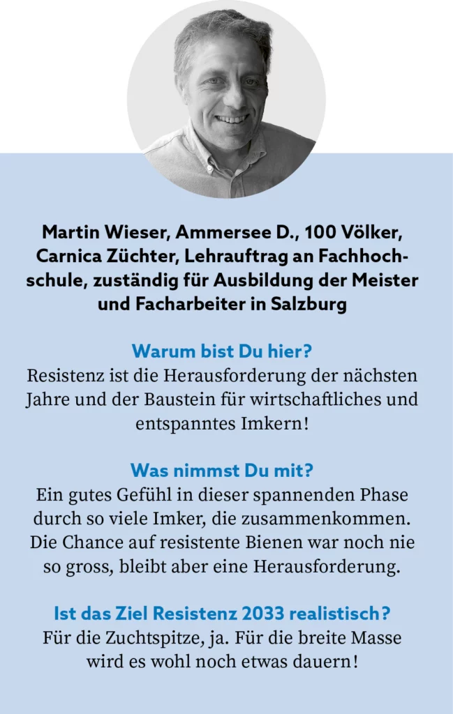 Die Arbeitsgruppe Varroaresistenz 2033 ruft nationale und internationale Imkerverbände, Bieneninstitute, Behörden, Ministerien und alle Imker/-innen dazu auf, gemeinsam dieses Ziel zu verfolgen und sich zu vernetzen.