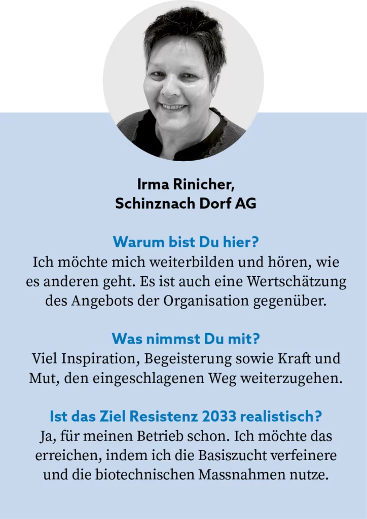 25 Jahre behandlungsfreie Betriebe aus Norwegen (Anita Reinertsen) und den USA (Kirk Webster) gewähren einen Einblick in die Anfänge bis heute. Im Alleingang haben sie das grosse Ziel der Behandlungsfreiheit erreicht. Die Resistenz oder Toleranz basiert auf einem Zusammenspiel aus Genetik, Betriebsweise und Umwelt. Nicht alle Einflussfaktoren sind mess- oder eindeutig belegbar. Entsprechend ist es für die Wissenschaft oft schwierig, die Wirkmechanismen vollständig nachzuweisen. Eine hundertprozentige Resistenz gibt es nicht – dennoch wird das Vorgehen häufig grundsätzlich infrage gestellt, obwohl es in der Praxis funktioniert. Es braucht starke Persönlichkeiten. Denn auch dieses Themenfeld ist geprägt von menschlichen Spannungen – von Anfeindungen, Ausgrenzung bis hin zu Drohungen. Solche Dynamiken sind nicht einzigartig, sondern zeigen sich ebenso in anderen Bereichen, etwa in der Medizin (Schulmedizin versus Naturheilkunde) oder in der Landwirtschaft (konventionelle versus regenerative Bewirtschaftung).