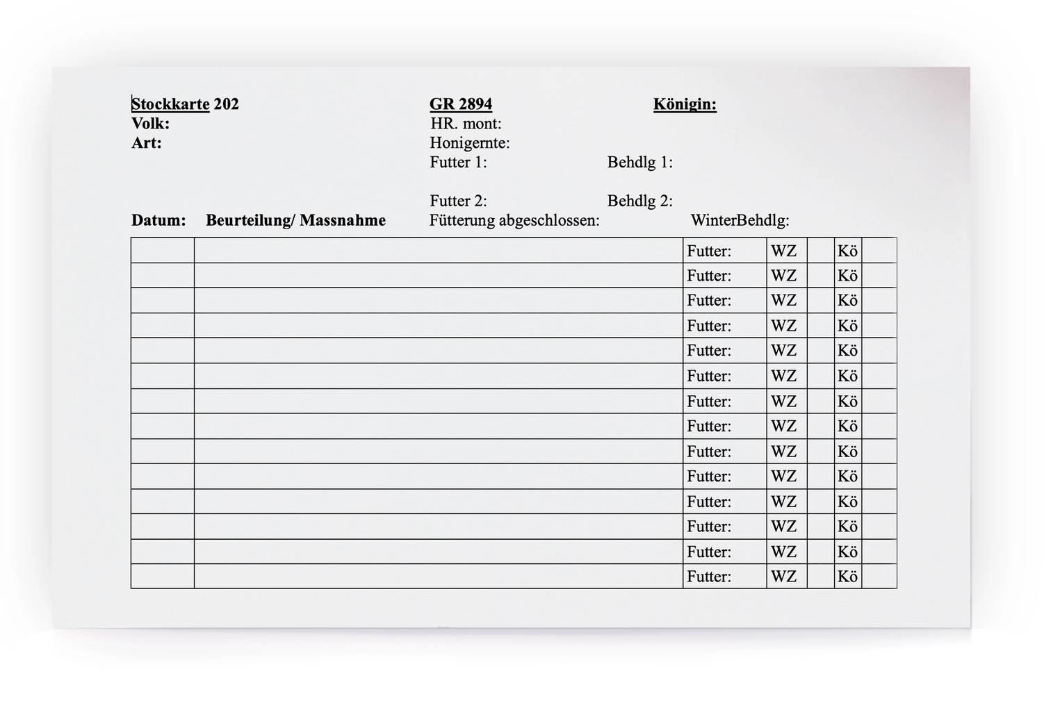 Zu den Klassikern gehört die Stockkarte auf Papier, die es in allerlei Formaten mit vielen oder wenigen Vorgaben gibt. Entscheidend sind auch hier wieder die eigenen Bedürfnisse. Gerade für Anfänger bieten die Vorgaben zum Ankreuzen eine wichtige Checkliste, damit bei der Durchsicht nichts vergessen geht. Vereine bieten häufig eigene Stockkarten an. Mit einer kurzen Suche im Internet werden Sie rasch fündig und können die verschiedenen Optionen vergleichen und für Ihre Imkerei anpassen.